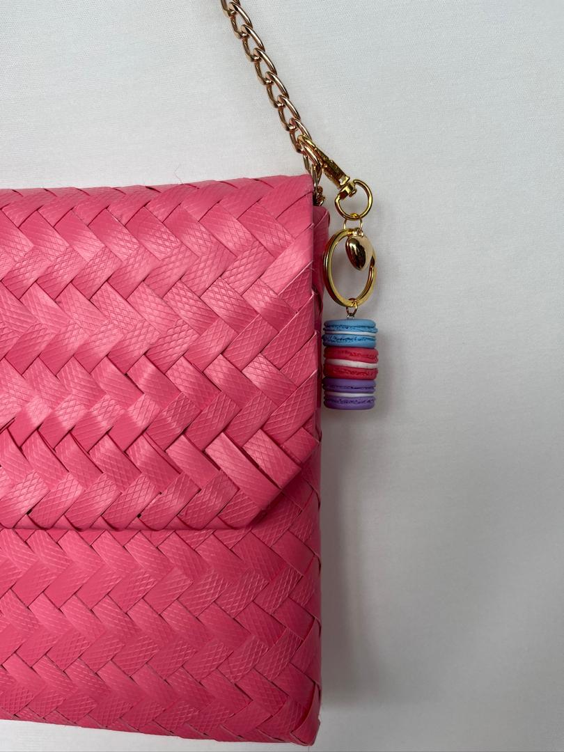 Add a touch of sweetness to your bag or keys with this handcrafted macaron keychain, carefully sculpted from high-quality polymer clay. Each macaron is detailed with realistic texture and colours – perfect for dessert lovers, gifting, or as a cute fashion accessory. Goes extra sweet with our Anyam Bags too in matching colours.