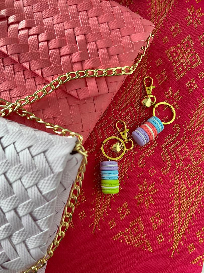 Each macaron keychain is individually handmade from clay, so slight variations in size, shape, and detailing are natural and part of its charm. Colours may also appear slightly different due to lighting and screen settings — no two pieces will ever be perfectly identical.