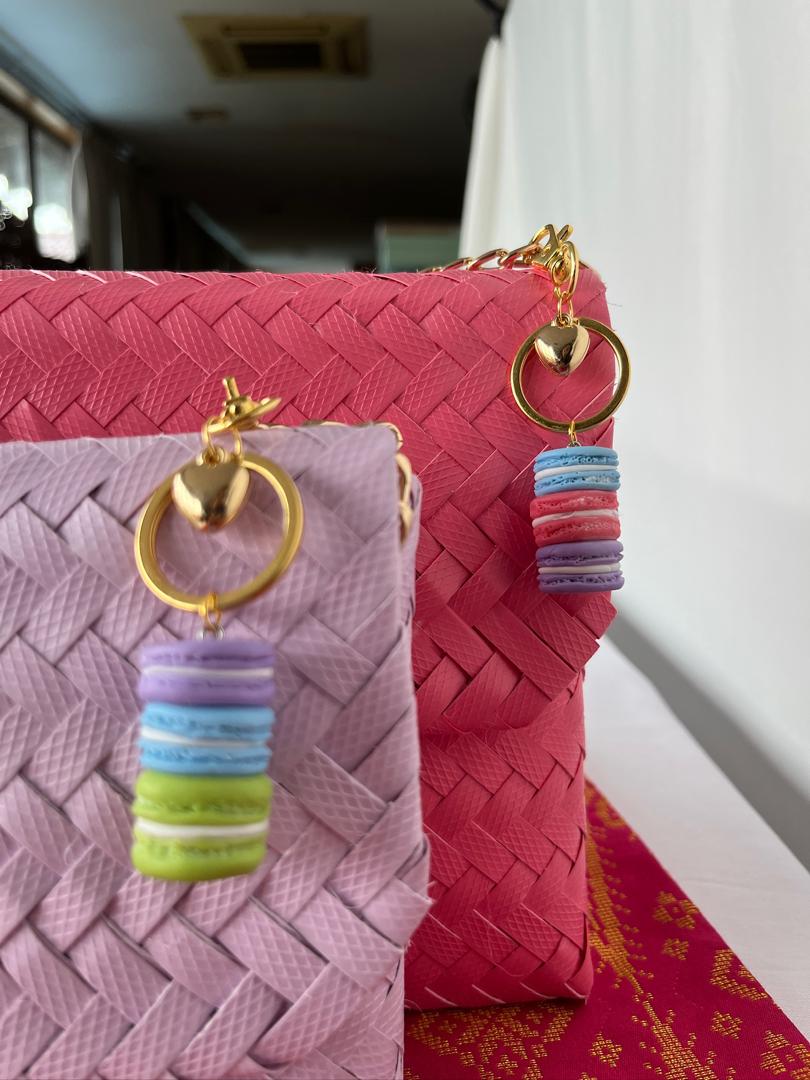 Add a touch of sweetness to your bag or keys with this handcrafted macaron keychain, carefully sculpted from high-quality polymer clay. Each macaron is detailed with realistic texture and colours – perfect for dessert lovers, gifting, or as a cute fashion accessory. Goes extra sweet with our Anyam Bags too in matching colours.